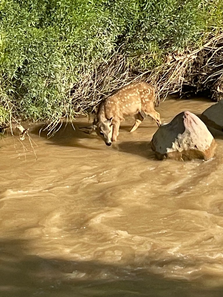 After I walked back to my campsite, I made myself something to eat and took a nap. When I got up I took my bike for a spin. I rode through all the campgrounds and the I rode the Pa Rus trail from the campground to the Canyon Junction. (Stop # 3 on the bus). The trail is a little over 3 1/2 miles long. Nice trail that follows and crosses the river I got to see a Mule deer getting a drink!