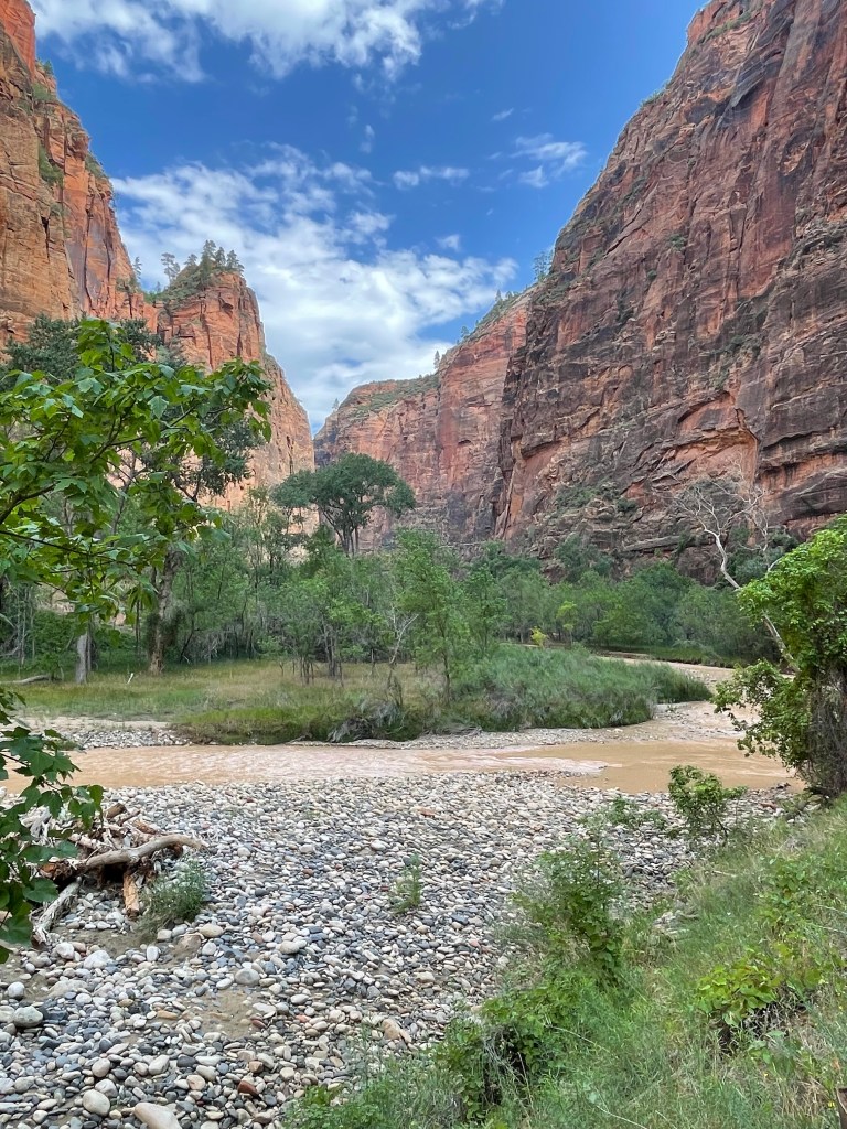 I know I skipped Stop # 8. The bus doesn’t stop there on its way up the canyon! The Temple area has a river walk that follows it up to “The Narrows”. This is where some of the people kept on hiking in the river to see how far they could get! Needless to say….. I stayed dry! The only time I’m going wading into a river, I usually have a fishing pole in my hand!