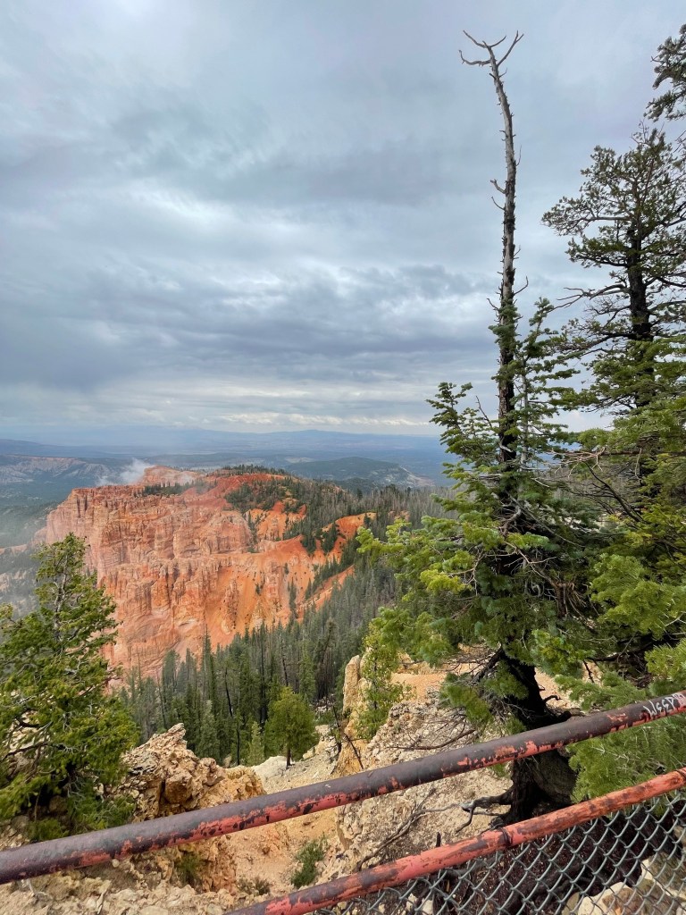 After I had completed the Rim Trail, I used the shuttle bus to ride back to Bryce’s Point. I then ate my lunch and drove to the farthest viewpoints, Yovimpa Point and Rainbow point. The rain had really stepped up while I was driving to these viewpoints. When I got there, the rain slowed a bit and I was able to get a couple of shots where you can see I was actually higher than the rain clouds! I was at the highest point in the park. Just a little over 9000 feet above sea level.