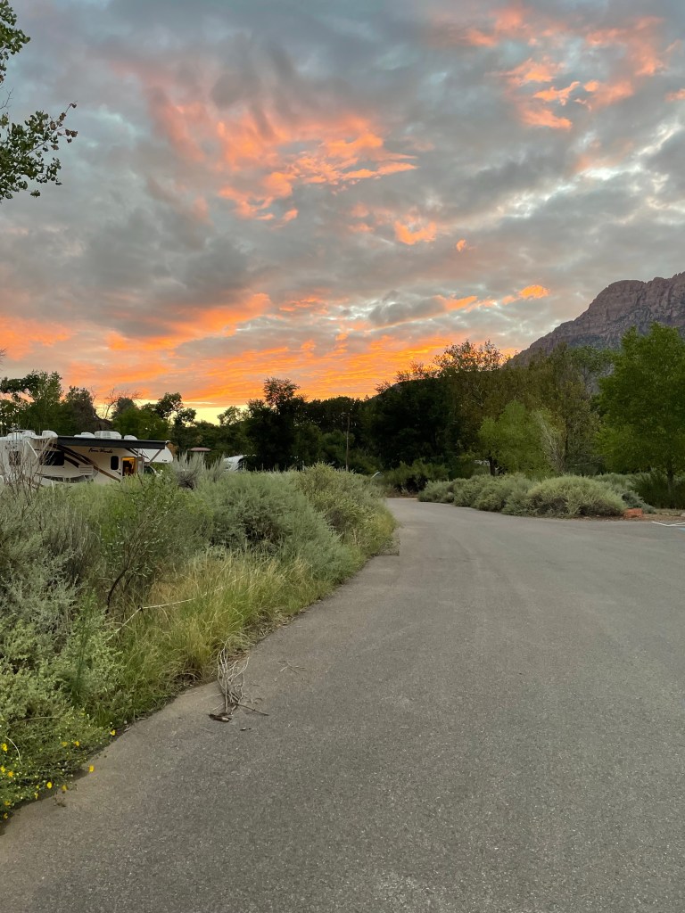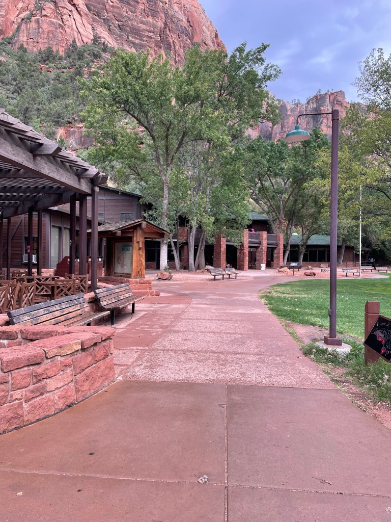 When I got back to Zion NP, I decided it was time to go the “Zion Lodge” for dinner. I had a Quinoa salad with grilled shrimp for my entree. I had a “Prickly Pear” frozen margarita with my dinner and had Raspberry drizzled piece of Cheesecake for desert!