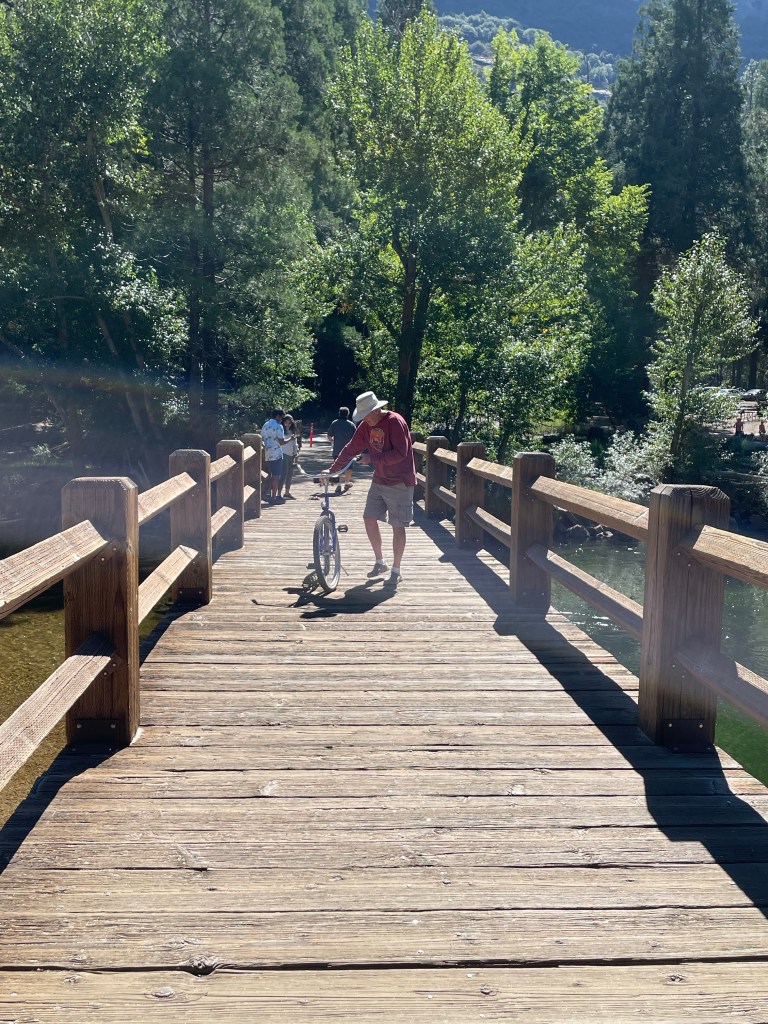We left the meadow and rode on until we came to what was called “The Swinging Bridge”. It was a nice bridge that took us across the Merced river. But it didn’t swing. Not even a little bit! I was really disappointed.