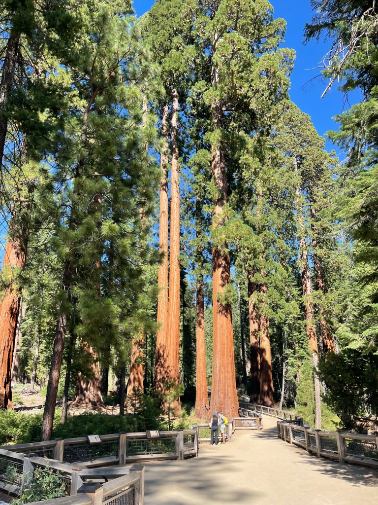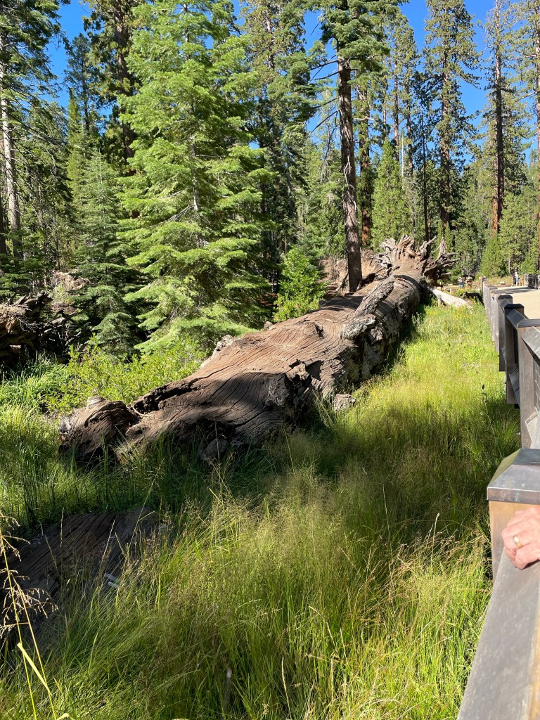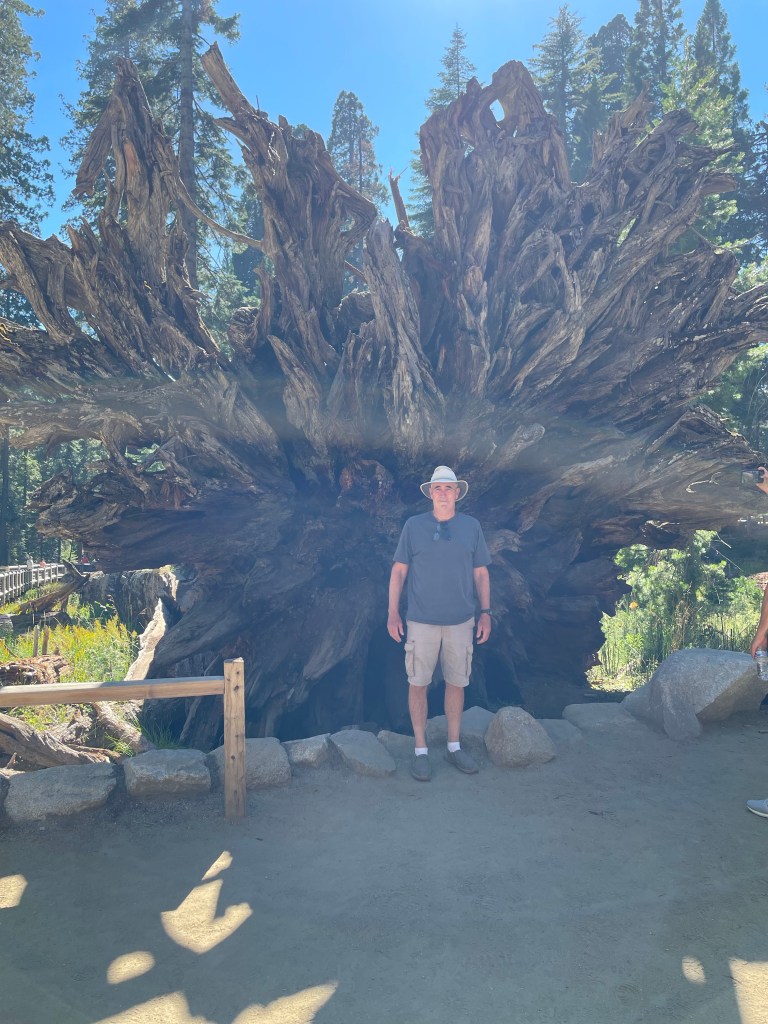 We reluctantly left Glacier Point after getting some lunch there. We drove for another hour and fifteen minutes. We were headed to the Mariposa Grove of Sequoia Trees.. Before we got there we stopped for some gas and went by the hotel where we planned to have dinner later. We made our reservation and then went in search of some giant trees. Boy howdy did we ever find them!