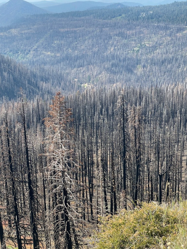 I mentioned the Dixie wildfire of 2021 briefly earlier. I was vaguely aware that there were some really bad forest fires happening in California in 2021. Everyone in the country saw the news stories on national TV. It was a big story. And yet……I had no concept of how big these fires were. I had no real reference for how much damage they caused out here. It is very hard not to see that devastation now. The last four parks I have visited have all been hit hard by these fires. Lassen Volcanic National Park may be the hardest hit of all of them! Lassen lost over 69% of all the forest in the park. The areas it hit are completely dead. Nothing survived in its wake.