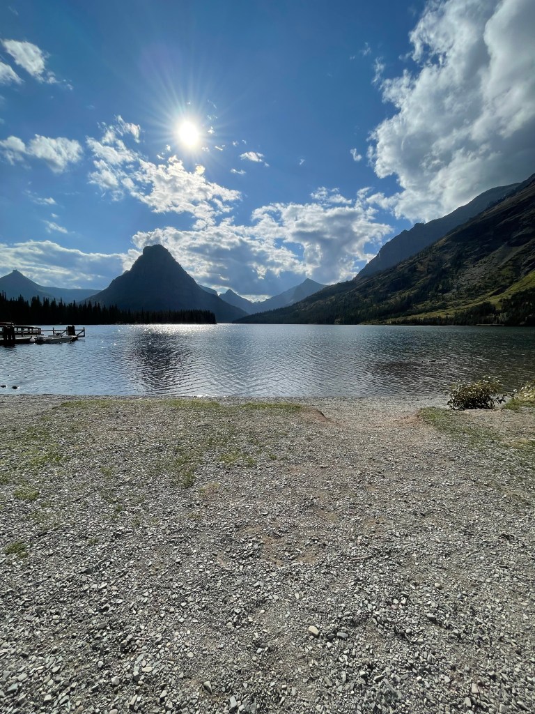 I went to the visitors center and got my suggested places to go all lined up in my head. This afternoon I drove over to “Two Medicine”. This area is close to East Glacier. The East Glacier area was where all the tourists originally went to before the Road to the Sun was started and then finally completed 20 years later in 1932. The drive to this area took about an hour and was filled with beautiful vistas. There are two Lakes in the area and also several waterfalls.
